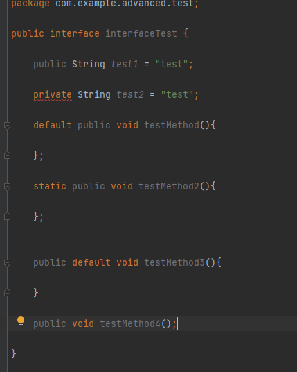 body를 작성하기 위해서는 default 혹은 static으로 구성하면 body를 작성 할 수 있단다.
