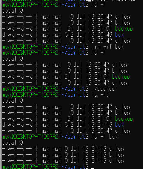 을 하면 된다. 이렇게 실행을 했다면 backup 안에 명령어들이 실행될 것이다!