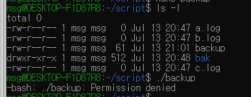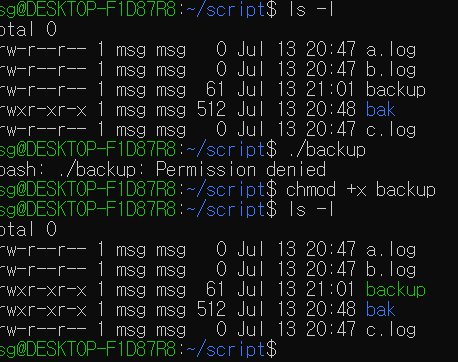 chmod +x backup 으로 따라하라고 한다. 이유는 나중에 설명해 준다던데 글쎄...