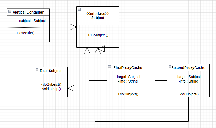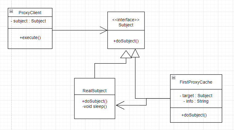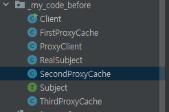 별 거 없어 보이지만 RealSubject가 Subject를 구현하는데 이것을 FirstProxyCache에서 캐싱 처리를 하고 있는 것이다.