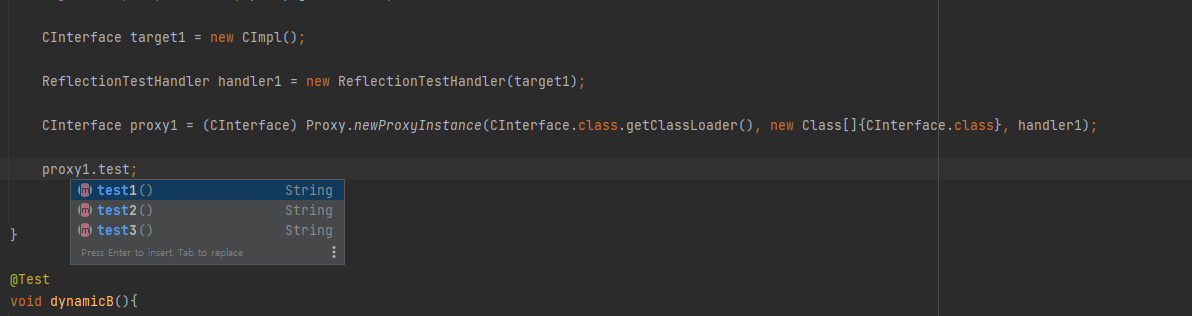 InvocationHandler는 reflection에서 제공하는 interface고 이것을 상속해서 ReflectionTestHandler를 만들었다.