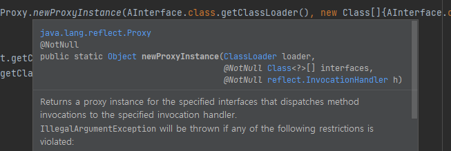 AInterface proxy = (AInterface) Proxy.newProxyInstance(AInterface.class.getClassLoader(), new Class[]{AInterface.class}, handler);