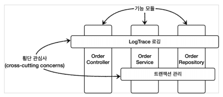 여러 핵심 기능, 혹은 기능 모듈에 공통적으로 해결하길 원하는 기능을 횡단 관심사라고 한다.