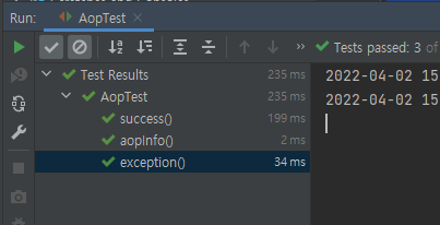 2022-04-02 15:37:37.410 INFO 11024 --- [ main] aoptest.aop.aoptest.AopService : [AopService.AopServiceTest]