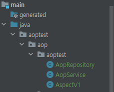 executeAll() 포인트컷은 aoptest.aop.aoptest 패키지와 하위 패키지를 대상으로 한다.