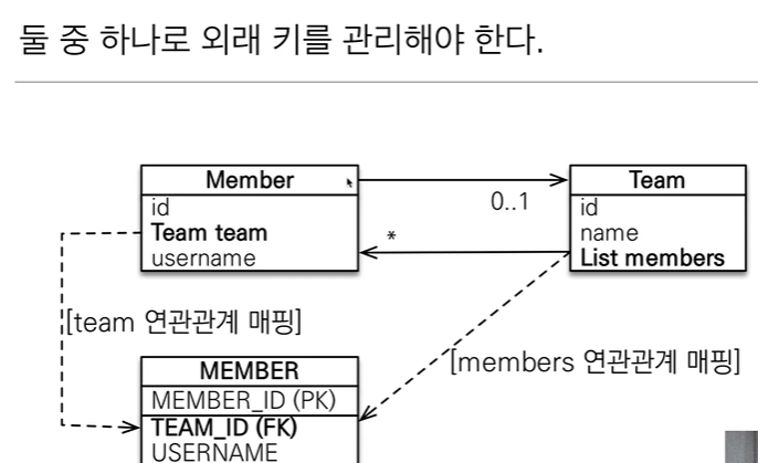 그래서 둘중 하나로 외래키를 관리해야 한다.