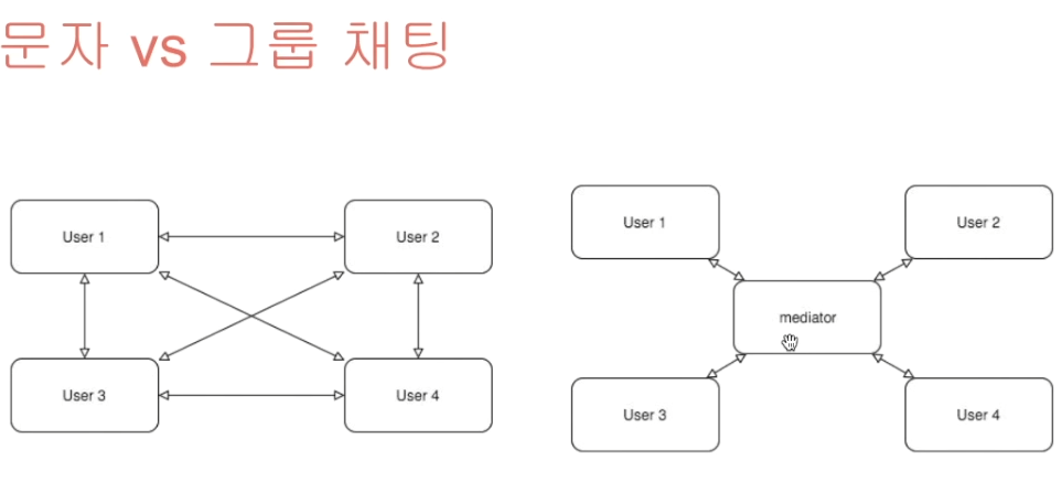 채팅룸에서 문자 메시지를 주고받는다고 할 때, 각자 개개인이 주고받는 것이 아니라 중앙 제어소를 거쳐서 응답을 하게 되면 훨씬 효율적이다.