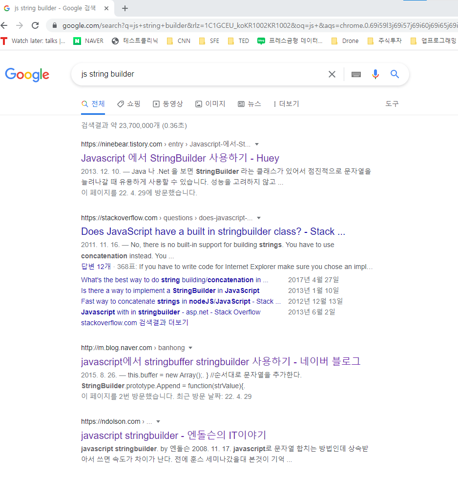 그래서 인터넷에 js StringBuilder라고 검색을 하면 많은 내용이 나온다.