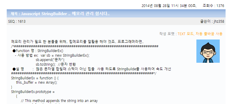 키메라 : 저 js 에서 StirngBuilder로 이렇게 작업했어요. 어때요? ㅎㅎ :)