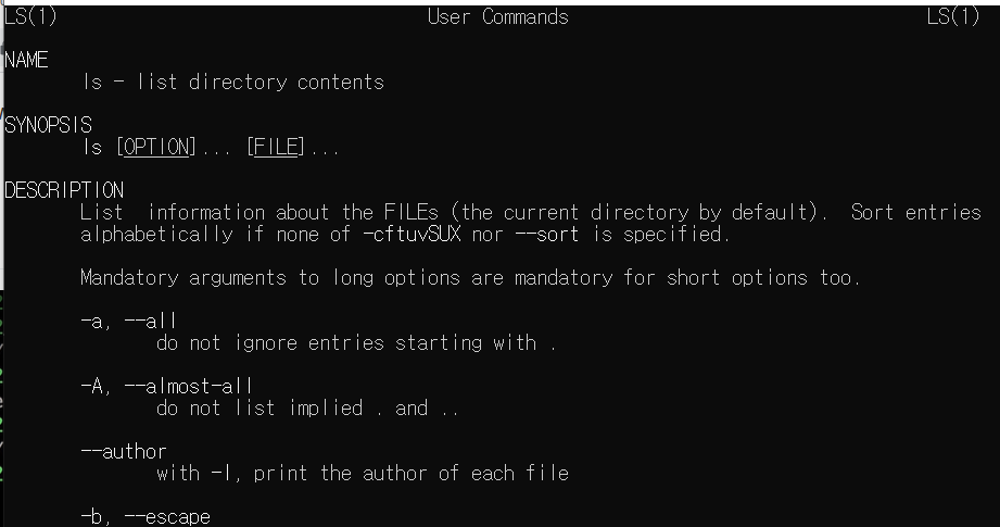 man ls를 하면 ls 에 대한 상세한 정보를 알려준다.