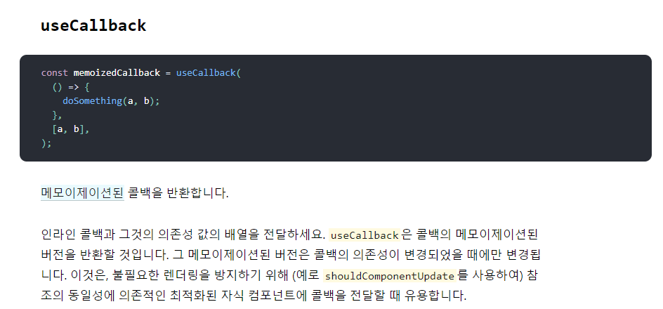 useCallback은 memoization된 콜백을 반환하는 hook이다.