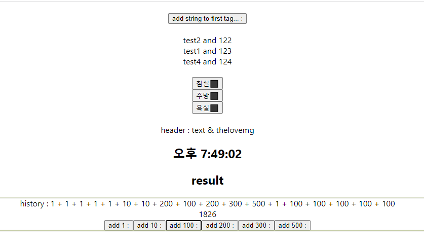 버튼을 클릭할 때 마다 덧셈이 되고 어떤 것이 계산됏는지 string을 추가하도록 했다.