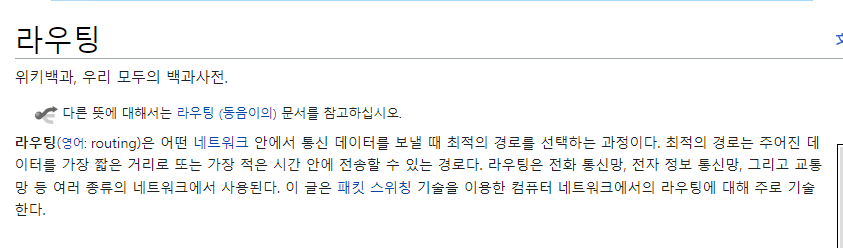 라우팅이란 경로를 정해주는 행위 자체와 그런 과정들을 포함하여 일컫는 말이다.