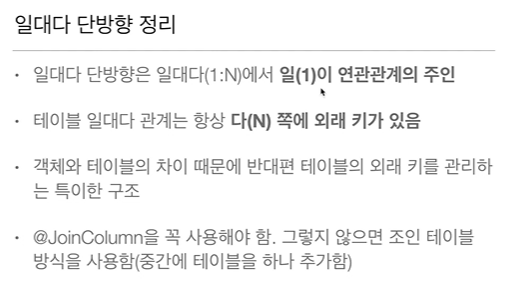일대다 단방향은 추천하지 않고 실무에서도 거의 쓰지 않는단다!