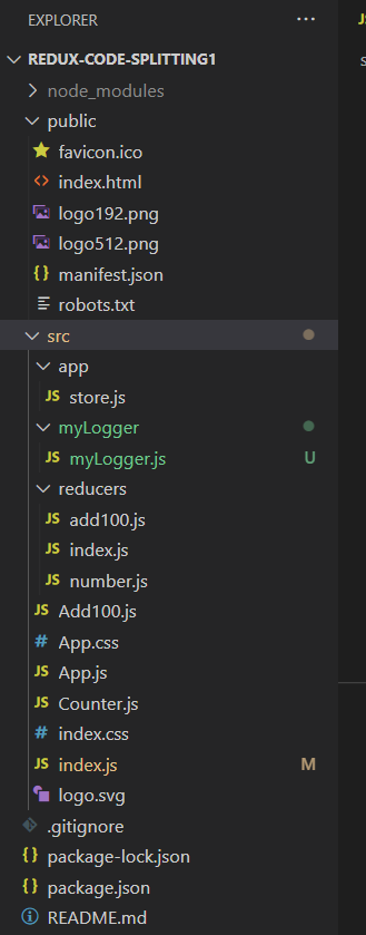 지난 시간에 사용했던 프로젝트에서 myLogger 폴더와 myLogger.js가 추가되었다.