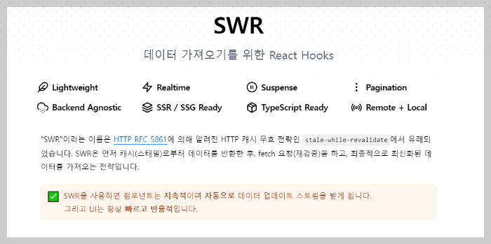 swr이란 데이터를 가져오기 위한 React Hooks다.