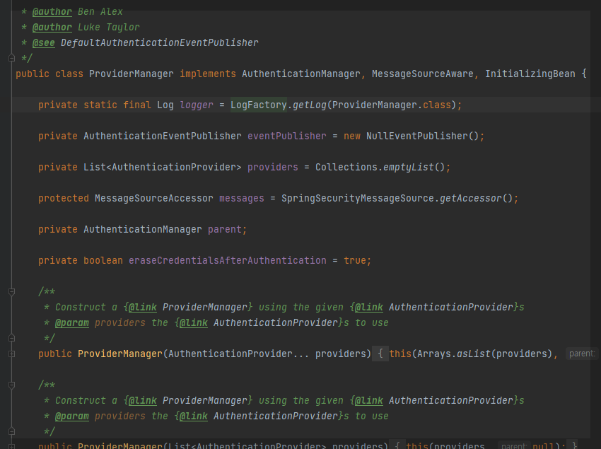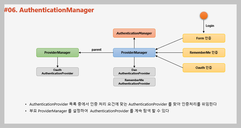 AuthenticationManager의 구현체가 어떤것이든 될 수 있지만, 대게 보통의 구현체는 ProviderManager다.