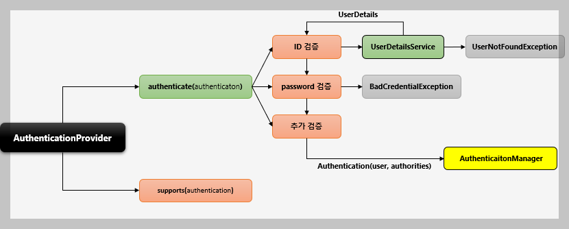 실제로 각각의 AuthenticationProvider는 어떻게 구체적인 인증 종류를 수행할 지 안다.