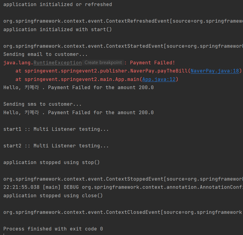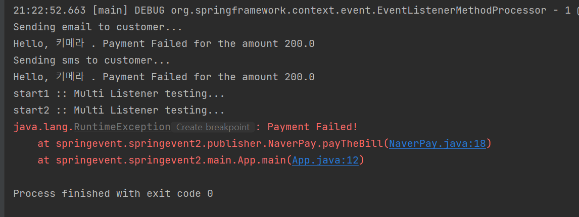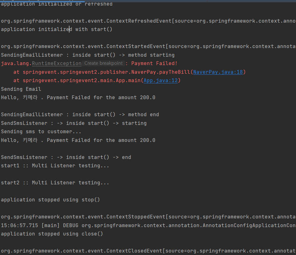 System.out.println("Hello, " + event.getName() + " . Payment Failed for the amount " + event.getAmount()+"\n");