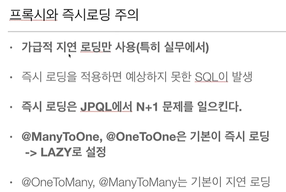 이것은 이론적인것이고 실무에서는 무조건 극소수를 제외하고 무조건 지연로딩으로 바른다!