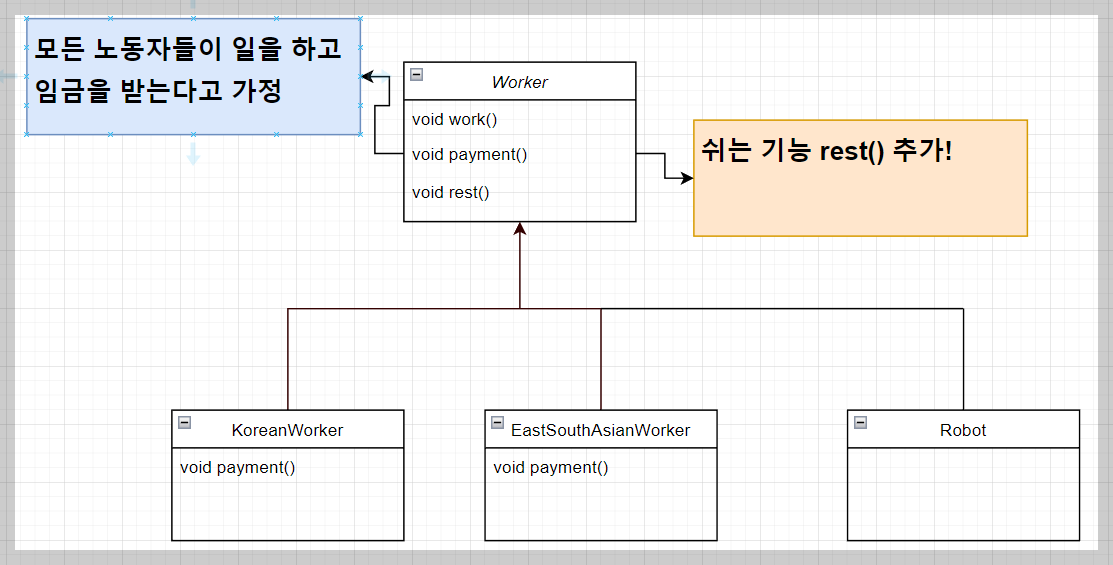 그렇게 되면 Robot 클래스에 적합하지 않은 행동이 추가되고 만다.