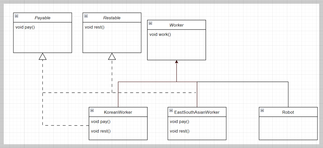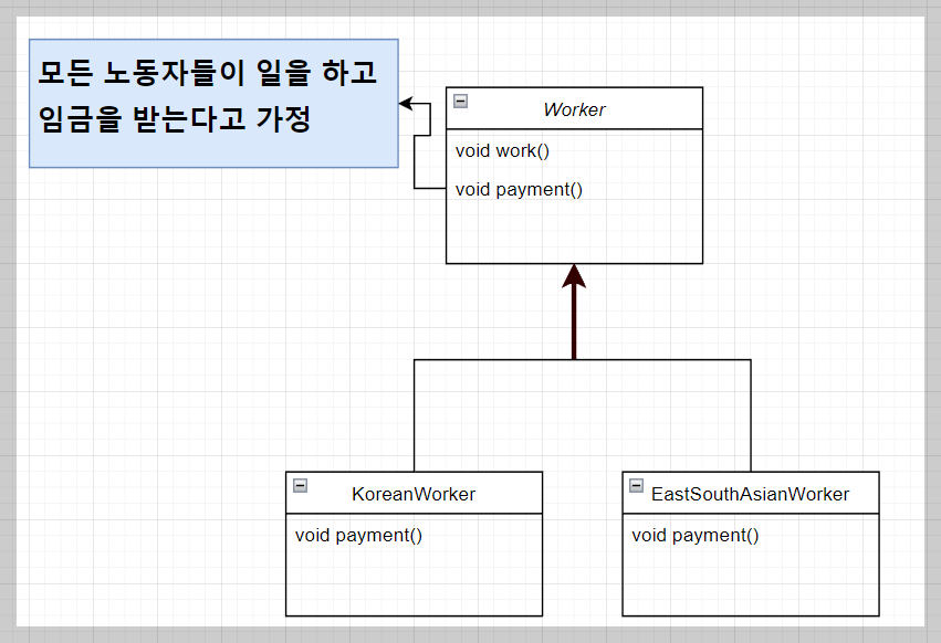 고로, 동일한 기능을 노동자들이 하기에 슈퍼클래스인 Worker 를 각각 상속하고 있다.