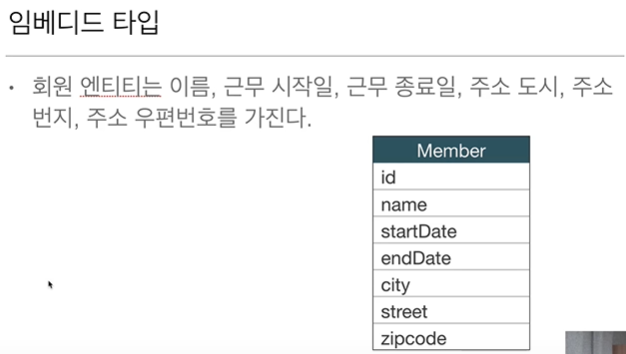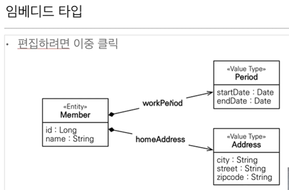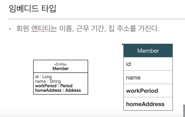 - JPA는 임베디드 타입(embedded type)이라 함