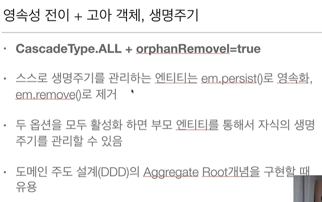 4. 임베디드 타입을 포함한 모든 값 타입은, 값 타입을 소유한 엔티티에 생명 주기를 의존함.