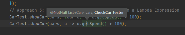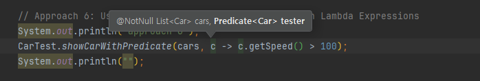 CarTest.showCar(cars, c -> c.getSpeed() > 100);