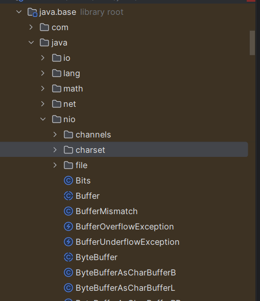 각각 Buffer관련 파일은 java.nio에 있고 Charset 은 charset package에 있으며 Channel은 channels packcage안 에 있다.