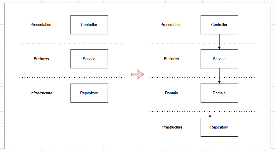 결국, 비즈니스 레이어를 애플리케이션 레이어와 도메인 레이어로 확장한 것이다.