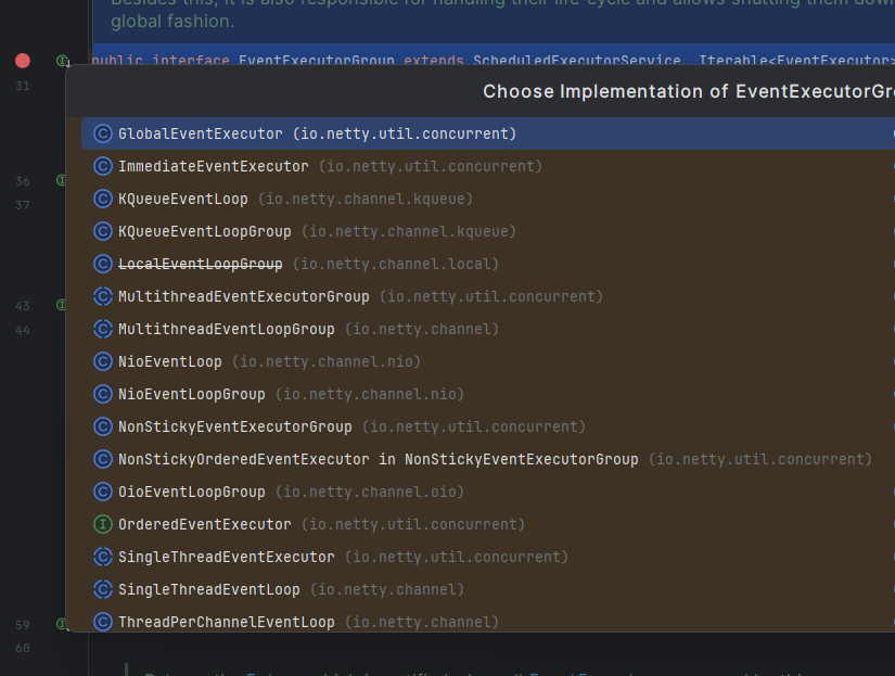 Netty에서 EvenExecutorGroup 이 Iterator<EventExecutor> 를 상속하고 있고