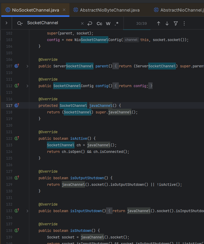 io.netty.channel.socket.nio.NioSocketChannel.class 는 io.netty.channel.socket.SocketChannel.class의 구현체인데,