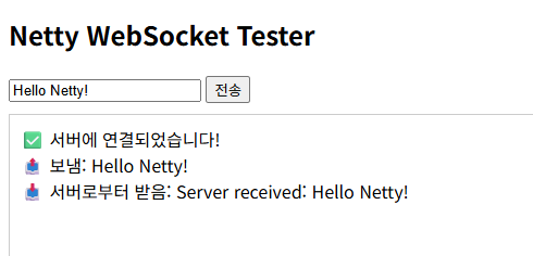 <input type="text" id="msgInput" placeholder="보낼 메시지 입력" value="Hello Netty!">