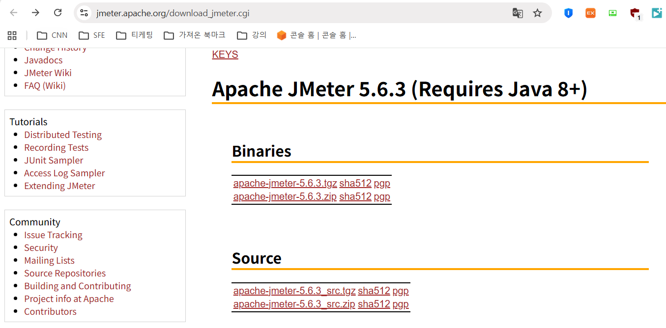 필자는 Apache JMeter 공식 사이트에 들어가서 다음을 받았다. (다운로드 공식 사이트 여기!)