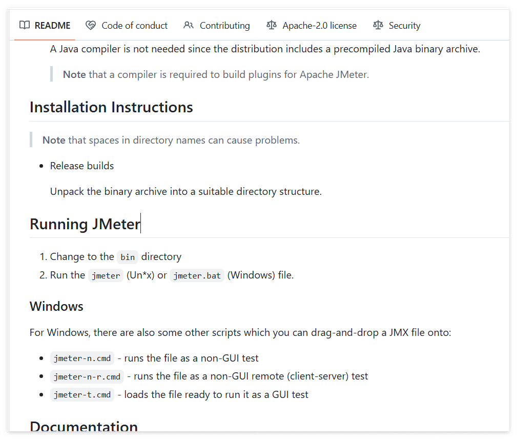 필자는 Binaries 에서 zip 파일을 다운로드 받아서 압축을 푼 후에 ApacheJMeter.jar를 실행하면 된다.