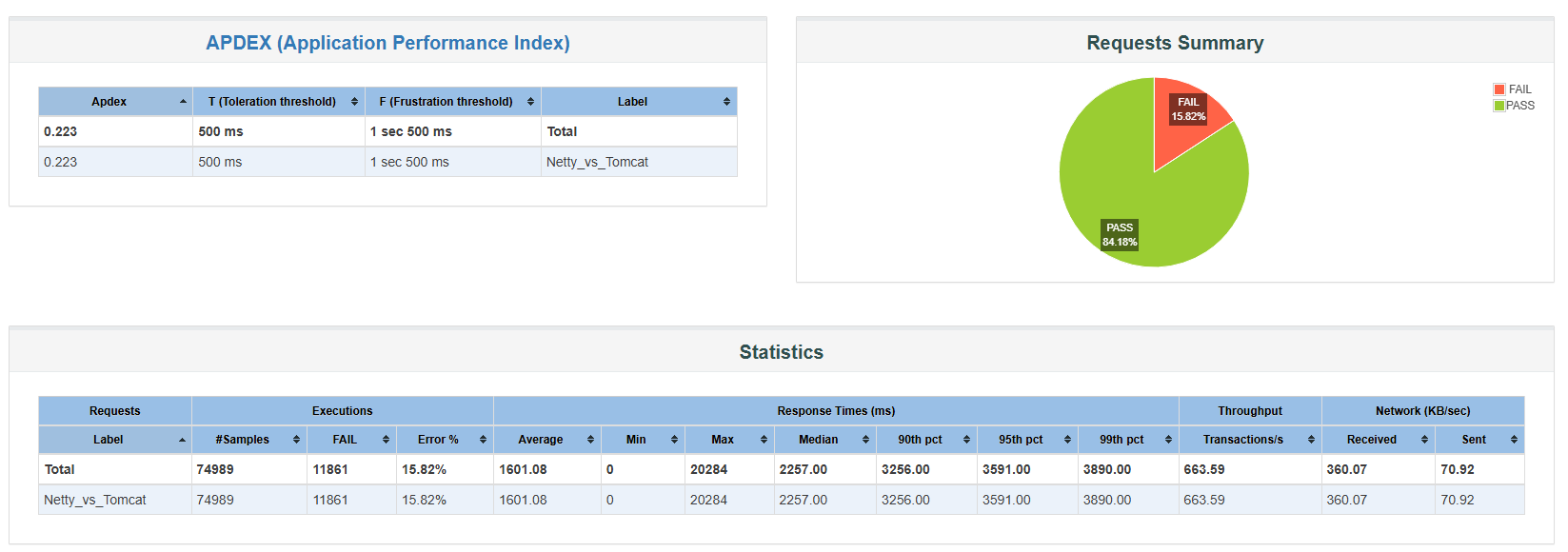 summary = 74989 in 00:02:03 = 608.9/s Avg: 1601 Min: 0 Max: 20284 Err: 11861 (15.82%)