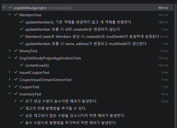 해당 코드의 작업들은 oop-ddd-test-project라는 곳에 생성해놓았다.