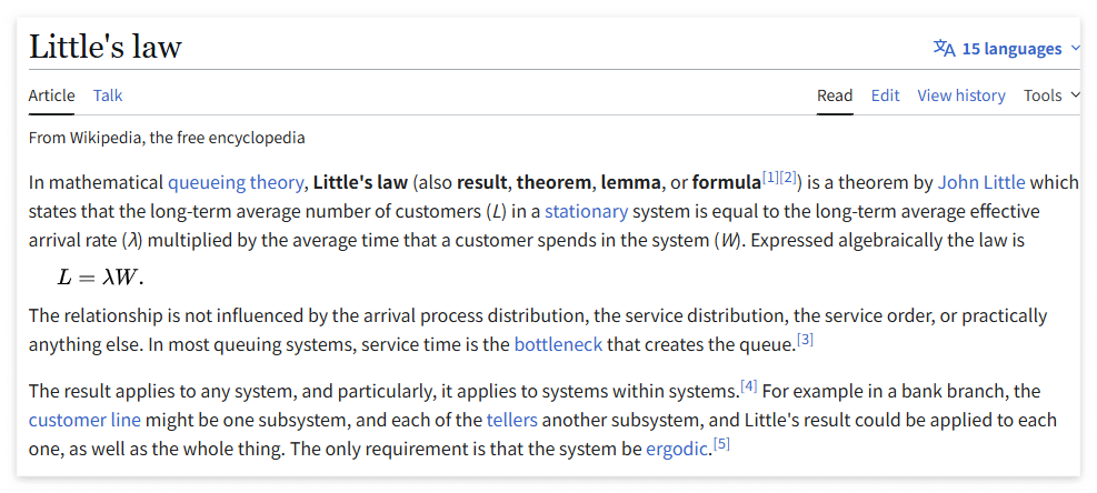 이는 시스템 성능 테스트에 활용하는 법칙이다. 이에 대해 찾아보면 좋을 것 같다.