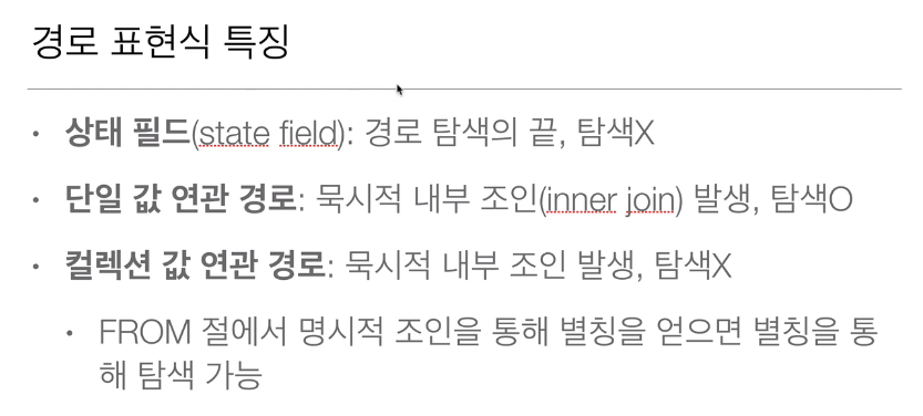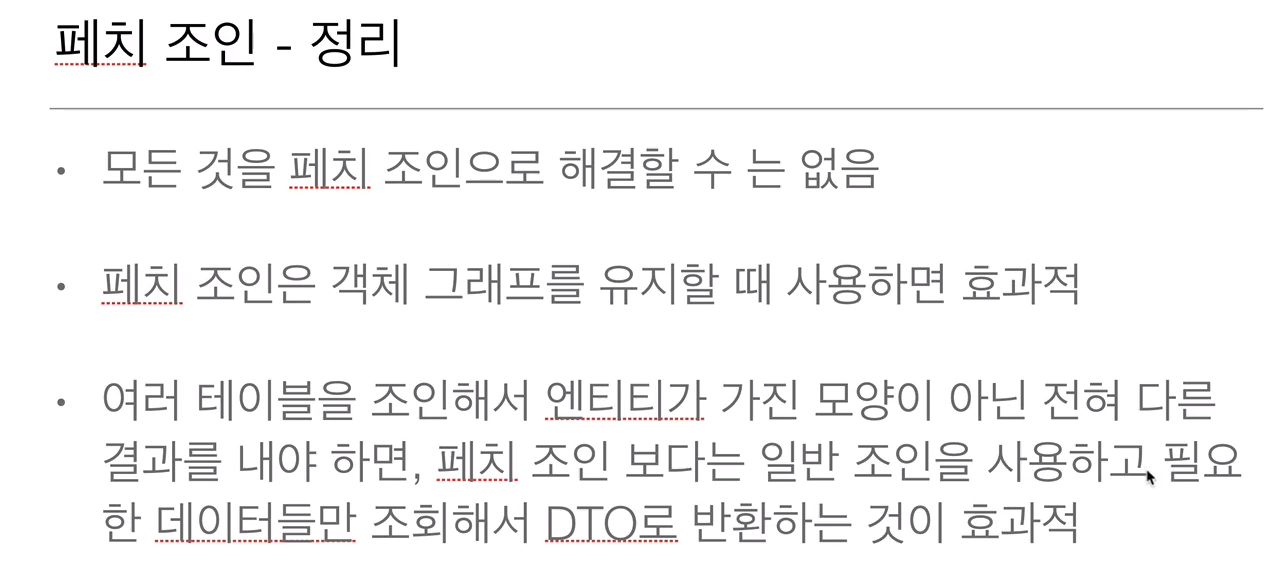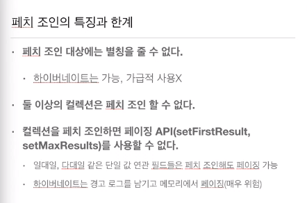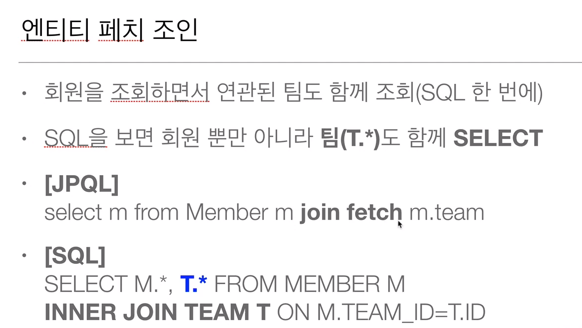 - 페치 조인 ::= [LEFT [OUTER] | INNER] JOIN FETCH 조인경로