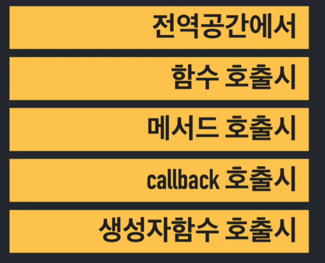 실행 컨텍스트가 생성될 때 this를 binding한다고 한다