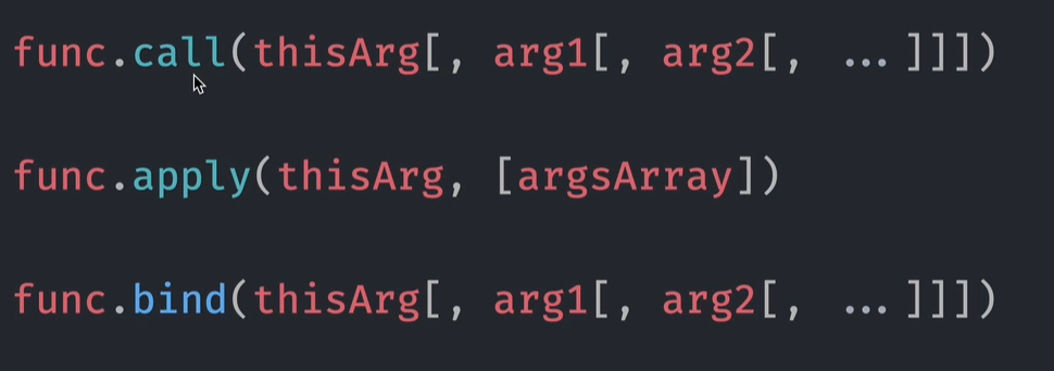 thisArg라고 하는 부분에 this를 넣어줘! 하는 것으로 이것들을 명시적인 this 바인딩이라고 한다.