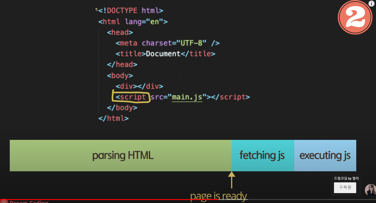 브라우저에서 위에서 부터 천천히 html을 읽어들이기 시작한다.