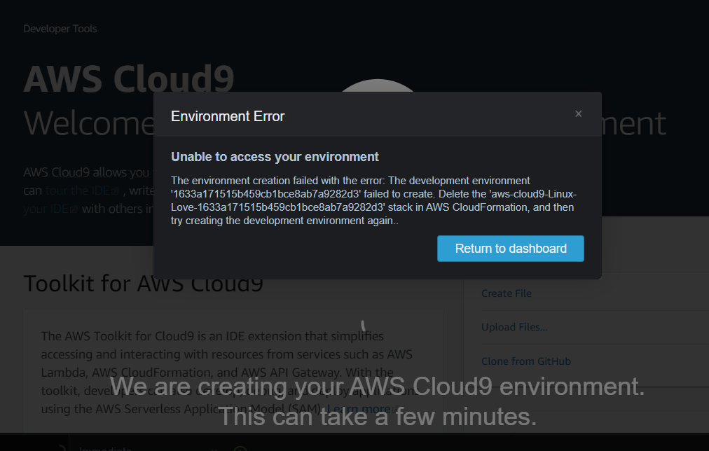 사이트에서 찾아보니 마지막줄에... try creating the development environment again... 이라는데...