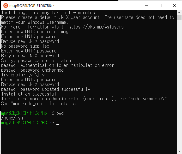 여기 윈도우에서 리눅스 사용하는 방법을 잘 설명해놓으신 선배님이 계신다.