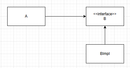 BImpl 클래스는 B Interface를 구현하므로 B Interface에 의존한다.